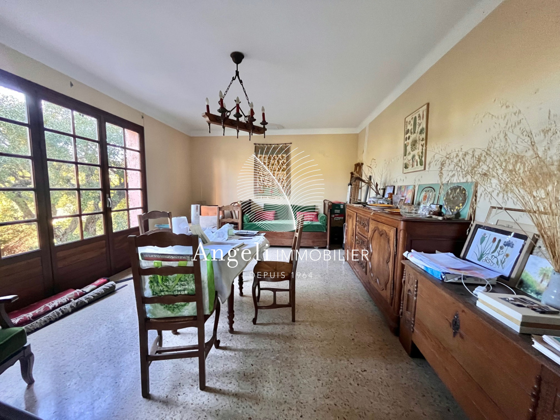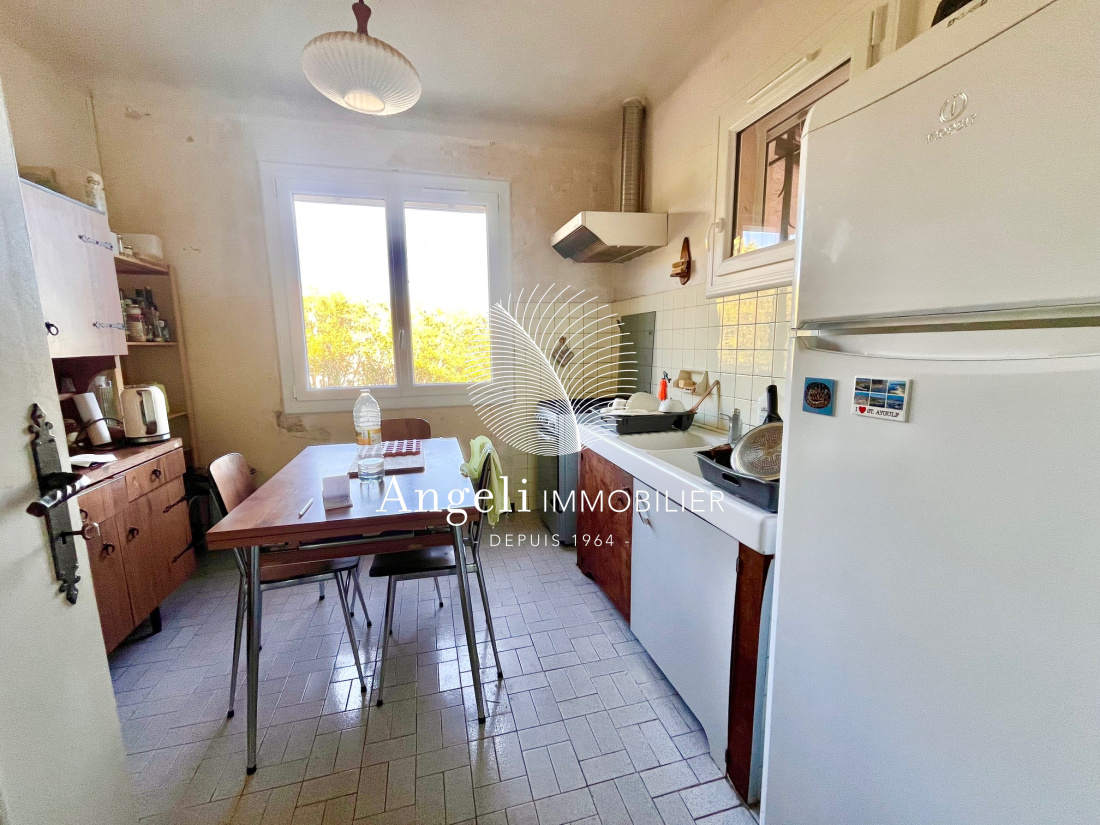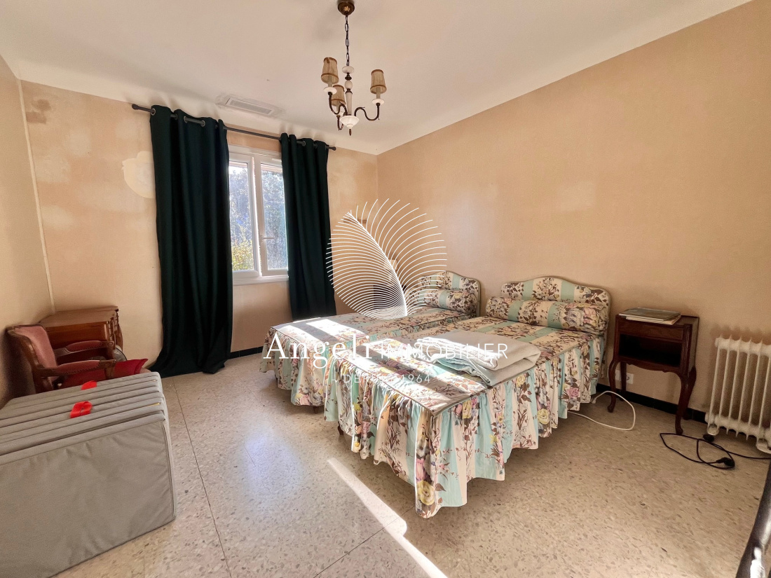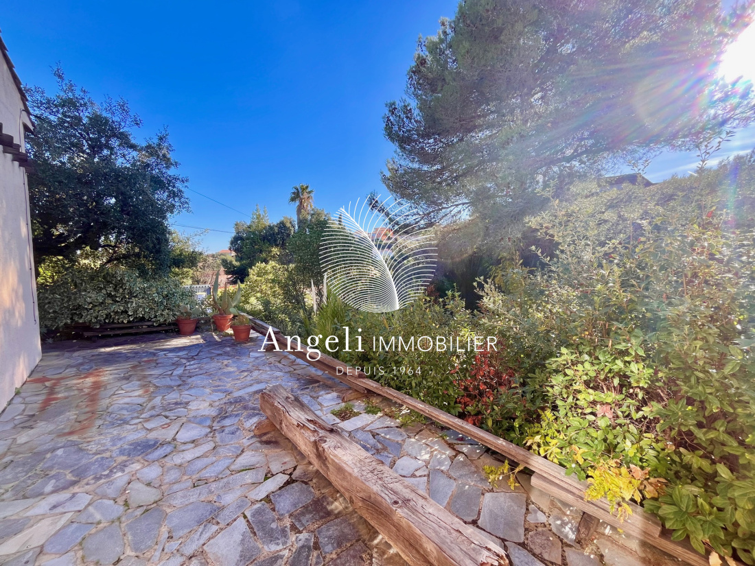Dans un quartier résidentiel recherché, Villa provençale de plain-pied avec jolie vue dégagée et aperçu mer. Se composant comme suit: Une entrée, cuisine indépendante, dégagement, séjour avec cheminée, 2 chambres, salle de bains, wc. Travaux à prévoir. Un garage. Terrasse couverte. Terrain de 1.540m² environ. Gros potentiel. A voir rapidement !