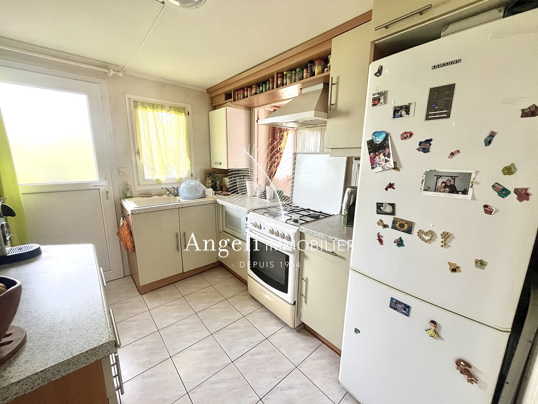 Dans un domaine de loisirs, habitation légère de loisirs (chalet ossature bois), d'une superficie de 56m² sise sur une parcelle de 200m² environ. Entrée, toilettes invités, séjour climatisé avec véranda, cuisine séparée avec accès sur l'extérieur, 2 chambres, une salle d'eau avec toilettes et fenêtre. Terrasse ombragée, possibilité de garer 2 voitures. Exposition Est. Domaine sécurisé avec piscine, tennis, supérette... Les informations sur les risques auxquels ce bien est exposé sont disponibles sur le site Géorisques : www.georisques.gouv.fr