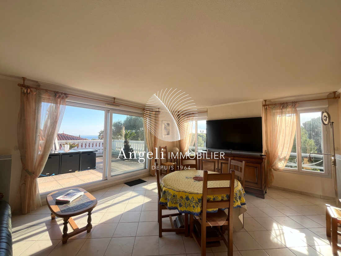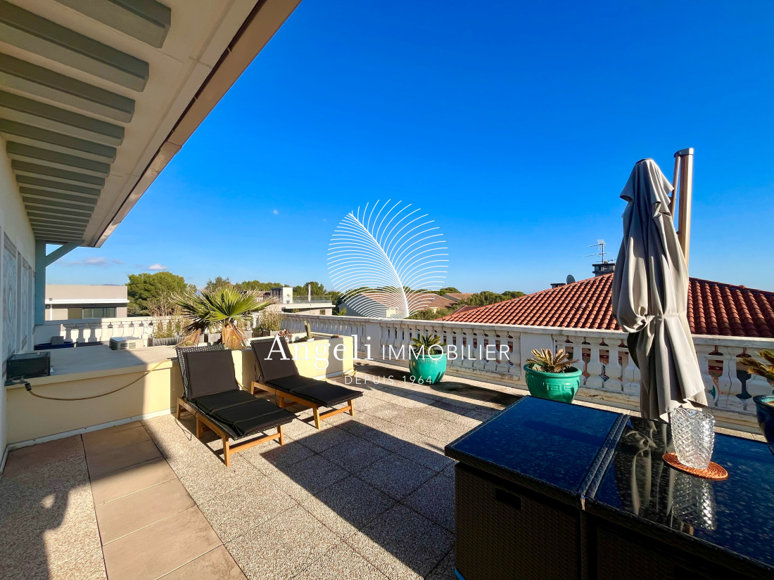 Rare à la vente : APPARTEMENT DERNIER ETAGE. Dans une résidence sécurisée de standing, avec piscine et au coeur d'un Parc, Appartement 3 pièces de 92m² situé en dernier étage, type "Villa sur le toit". Une entrée, cuisine séparée équipée, séjour avec accès à la terrasse de 76m² vue mer, chambre en suite avec salle d'eau, seconde chambre en suite avec salle de bains. Garage double (en longueur). Climatisation et fibre dans l'appartement. Ravalement de façade en cours. Les informations sur les risques auxquels ce bien est exposé sont disponibles sur le site Géorisques : www.georisques.gouv.fr