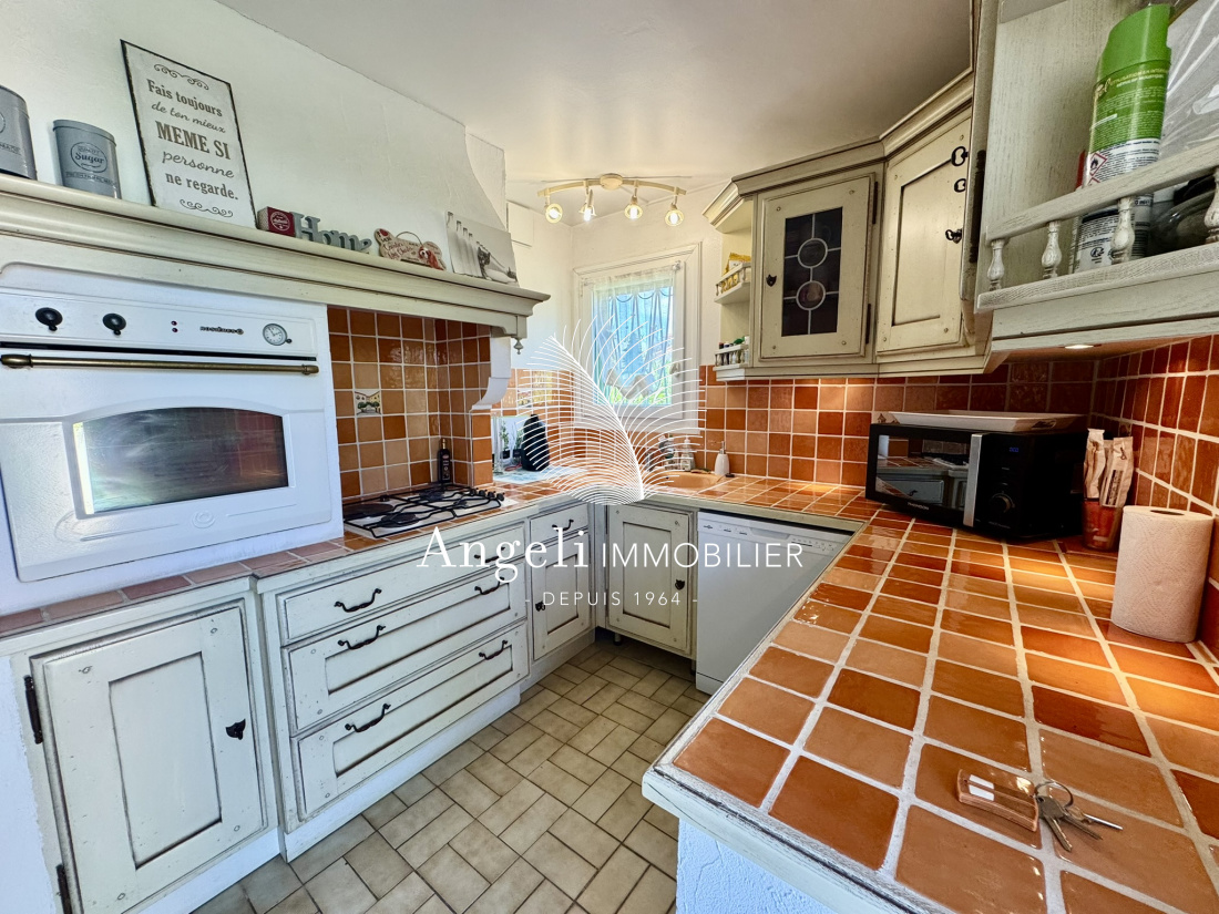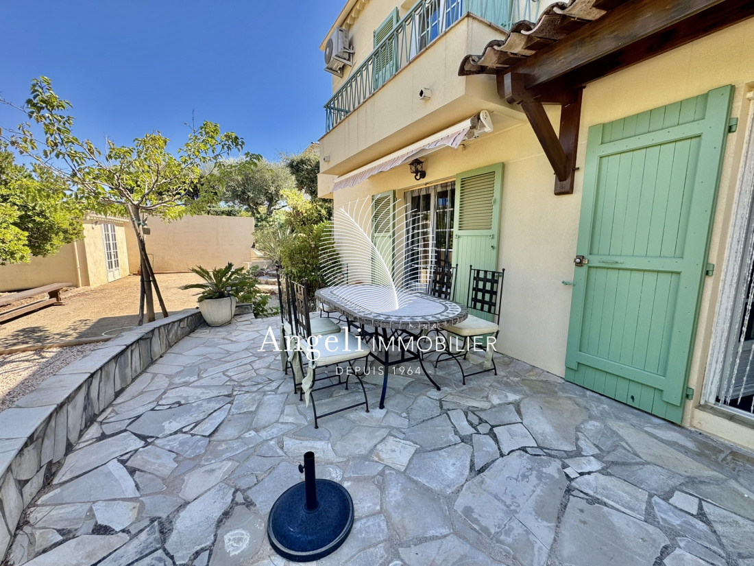 Maison individuelle des années 60 se composant en 2 appartements totalisant environ 155m² de surface habitable. A l'étage : entrée avec placards, salon/salle à manger avec insert et accès à une terrasse avec vue mer, cuisine séparée, 2 chambres, une salle d'eau, toilettes séparées. En rez de jardin : salon, cuisine séparée, 2 chambres, une salle d'eau, toilettes séparées. Garage de 25m². Double vitrage, climatisation, chauffage au gaz, volets en aluminium. Piscine au sel, terrain de boules, parkings, portail automatique, visiophone, ravalement de façade fait. Les informations sur les risques auxquels ce bien est exposé sont disponibles sur le site Géorisques : www.georisques.gouv.fr