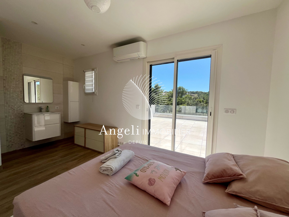 Dans un quartier résidentiel calme, Villa contemporaine récente exposée sud ouest offrant une superbe vue panoramique sur les collines. Elle se compose comme suit ; une entrée, une cuisine ouverte sur le séjour, chambre de plain-pied, dressing attentant, salle de bains + douche. A l'étage, 2 chambres avec solariums individuels et salle d'eau commune. Vaste sous sol, garage double et pièce annexe possibilité salle de sport ou cinéma. Terrasse couverte et piscine. Le tout édifié sur un terrain paysagé de 490m² environ. Coup de coeur assuré ! Les informations sur les risques auxquels ce bien est exposé sont disponibles sur le site Géorisques : www.georisques.gouv.fr