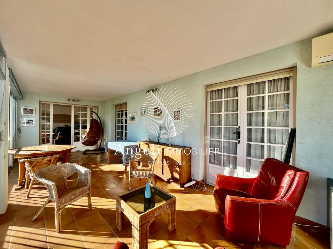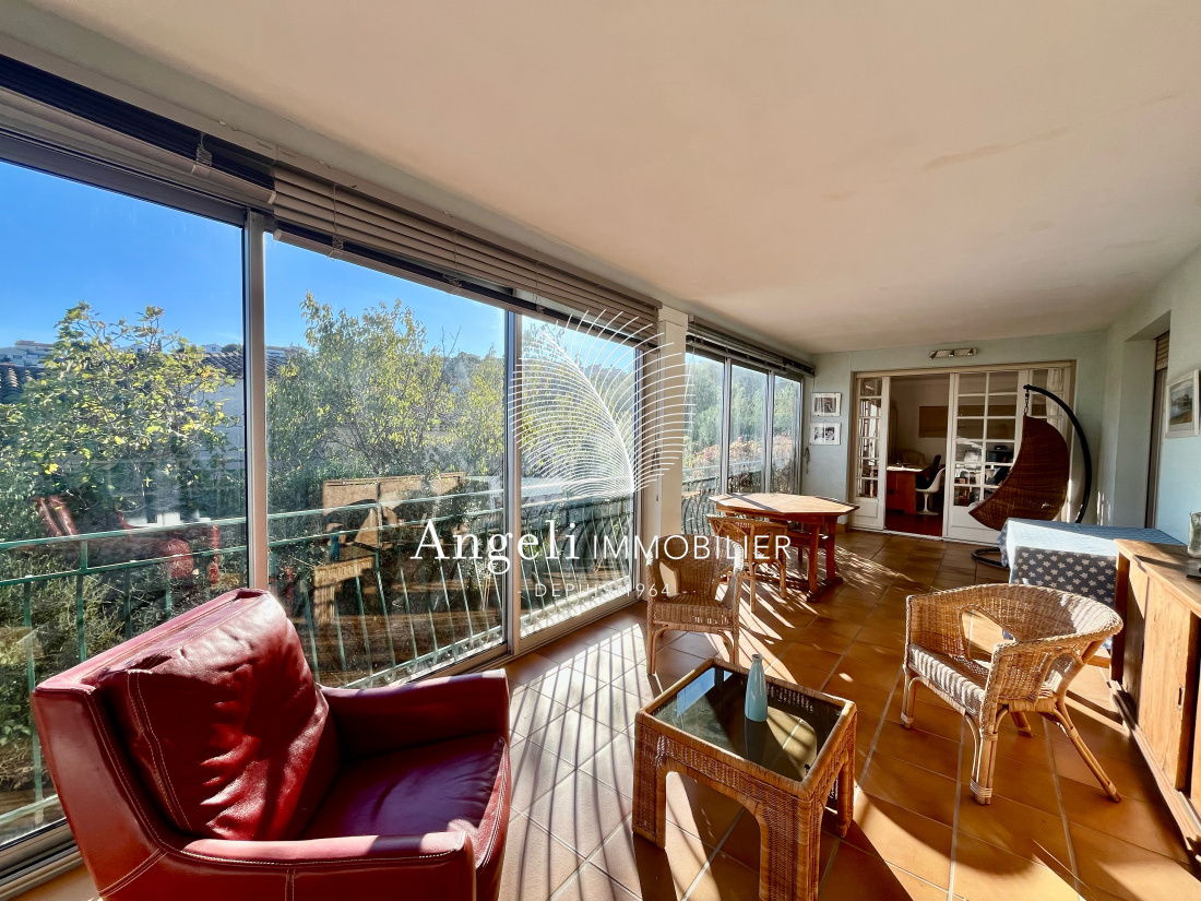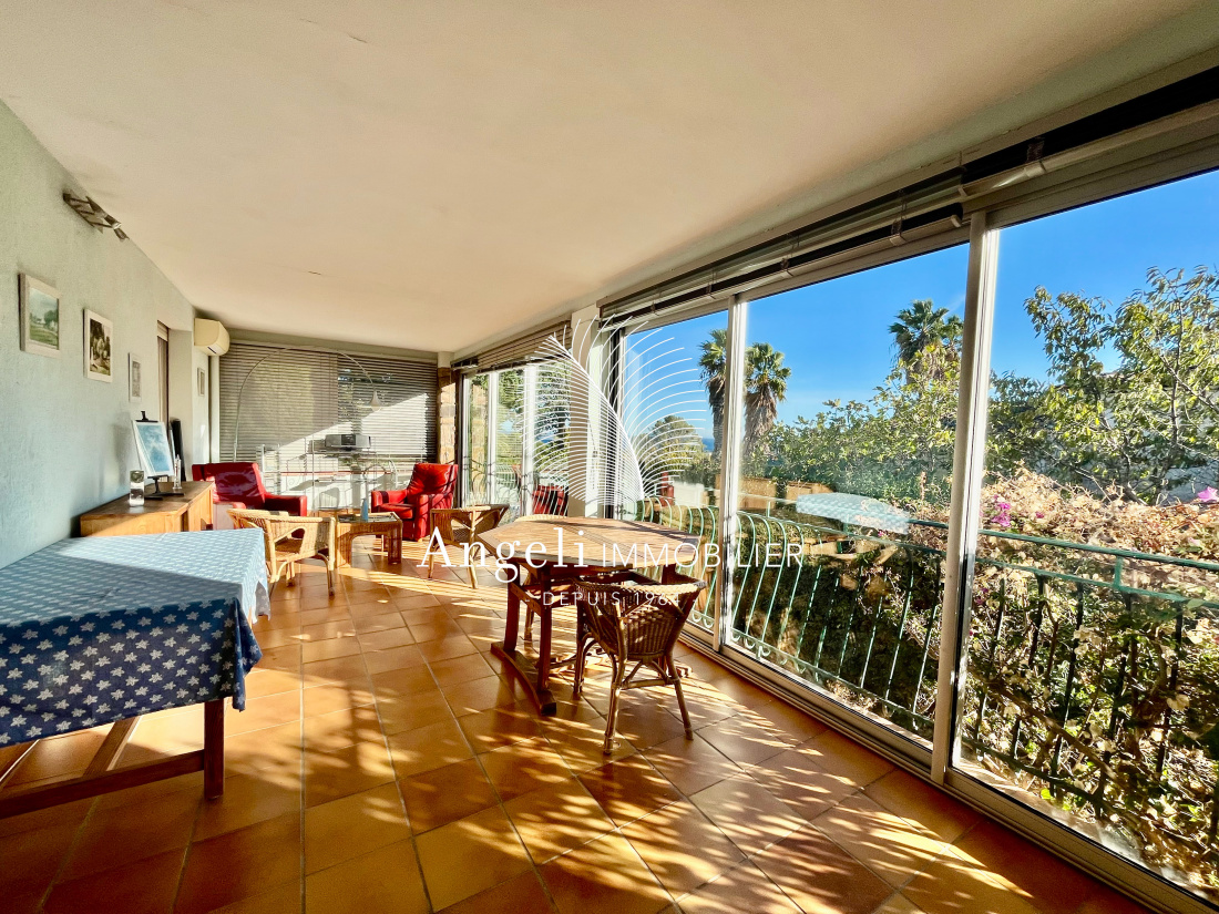 Sur un terrain d'une surface de 1207m², villa composée de plusieurs logements :- Le premier, composé de : une entrée, buanderie, cuisine, séjour avec cheminée, véranda vue mer, wc indépendant lave mains, trois chambres, une salle de bains douche/baignoire. - En rez de jardin - au niveau de la piscine : trois appartements: un deux pièces avec cuisine, séjour, chambre, salle d'eau/wc. Un studio. Un deux pièces avec cuisine, séjour, salle d'eau/wc. Garage avec machinerie. Cave. Piscine traditionelle au sel. Abri de jardin.
