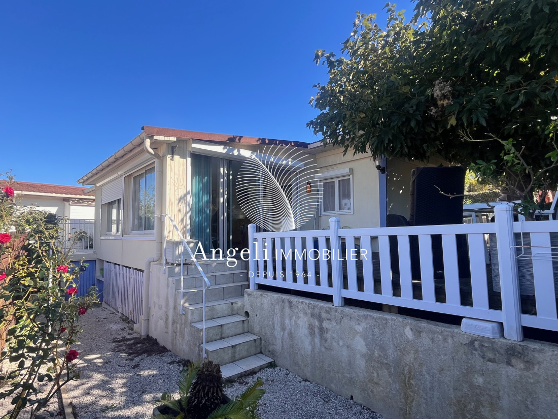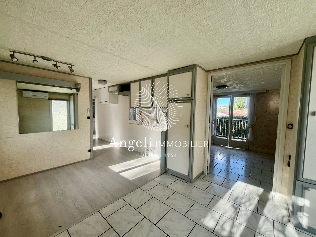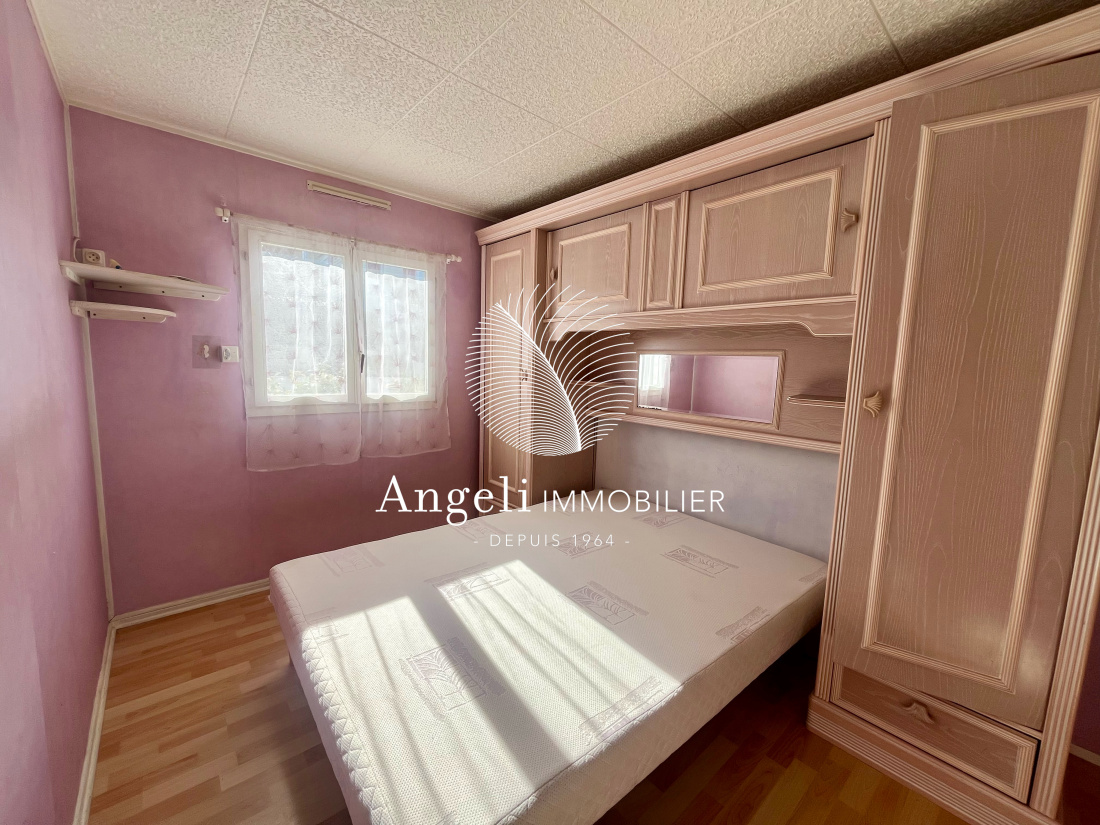 Dans un parc résidentiel avec piscine et tennis, habitation légère type mobil home comprenant une entrée via une extension (sur dalle béton) définie comme étant la cuisine et le séjour. Dans la structure d'origine : 2 chambres, une salle d'eau/wc, un espace pouvant faire office de salon secondaire. Terrasse. Abri de jardin et une cave sous la terrasse. Terrain de 208m² environ avec emplacement de parking.