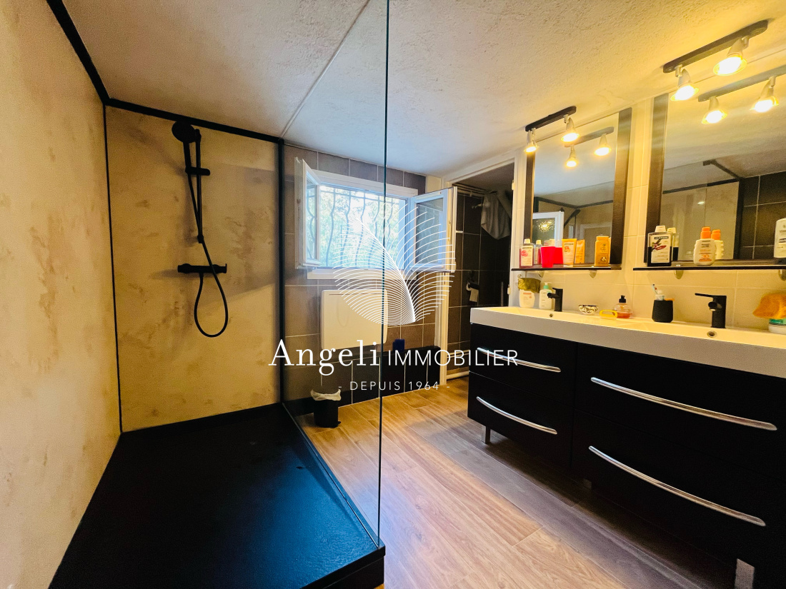 Villa provençale entièrement rénovée et édifiée sur 2 niveaux. Se composant comme suit: partie principale à l'étage avec une entrée, cuisine et salle à manger, salon donnant accès à une belle terrasse exposition Sud. Un dégagement, 2 chambres avec leurs salles d'eau individuelles. Au Rez de chaussée, 3 chambres, salle d'eau refaite à neuf et moderne. Garage, Abri voiture. Cuisine d'été. Terrain plat de 582m² environ.