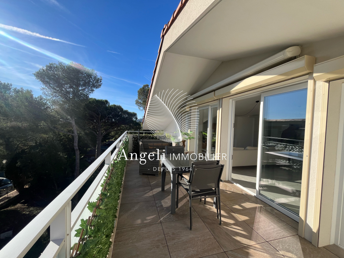 Dans une résidence sécurisée avec piscine au centre-ville de Saint-Aygulf, tout en étant au calme, très bel appartement au deuxième étage et dernier avec ascenseur. L'appartement de 82,23m² (loi carrez 66,92m²) se compose comme suit : entrée avec toilettes et vestiaires, lumineux séjour donnant sur une terrasse de 18m² avec aperçu mer, cuisine ouverte équipée. Deux chambres dont une avec accès à la terrasse, grande salle d'eau. Nombreux rangements, exposition Sud Est, climatisation réversible. Aucun travaux à prévoir. Un garage en sous-sol et une place de parking viennent compléter ce bien. Les informations sur les risques auxquels ce bien est exposé sont disponibles sur le site Géorisques : www.georisques.gouv.fr
