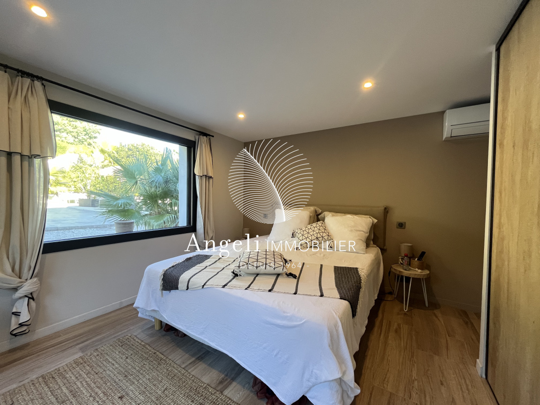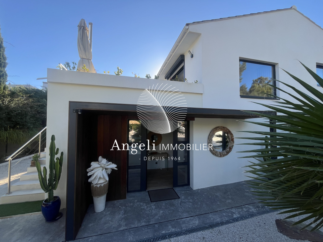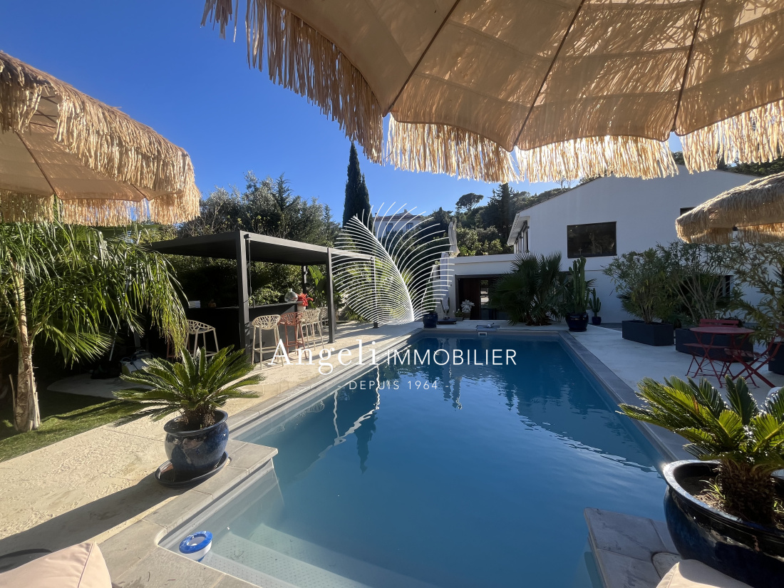 Saint-Aygulf : Entièrement rénovée avec beaucoup de goûts et des materiaux de qualité, cette superbe villa de 180m² se compose comme suit : en rez-de-jardin, 4 suites parentales avec salle d'eau et buanderie ouvrant sur des terrasses extérieures. A l'étage :superbe séjour / salle-à-manger donnant sur une terrasse de plus de 50m² avec cuisine ouverte ainsi qu'une suite parentale. A l'exterieur vous serez charmés par ce magnifique plateau piscine avec cuisine d'été. Terrain arboré de 1023m².