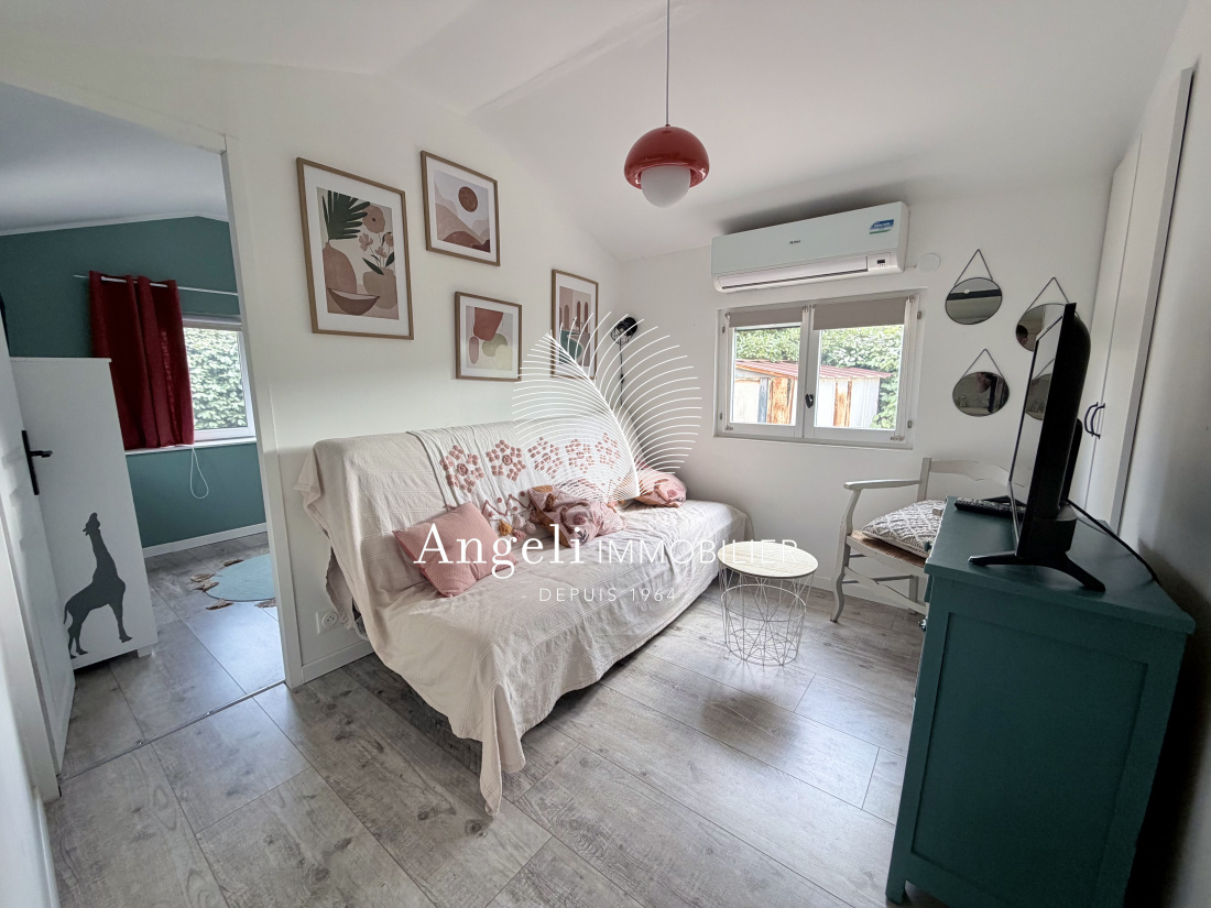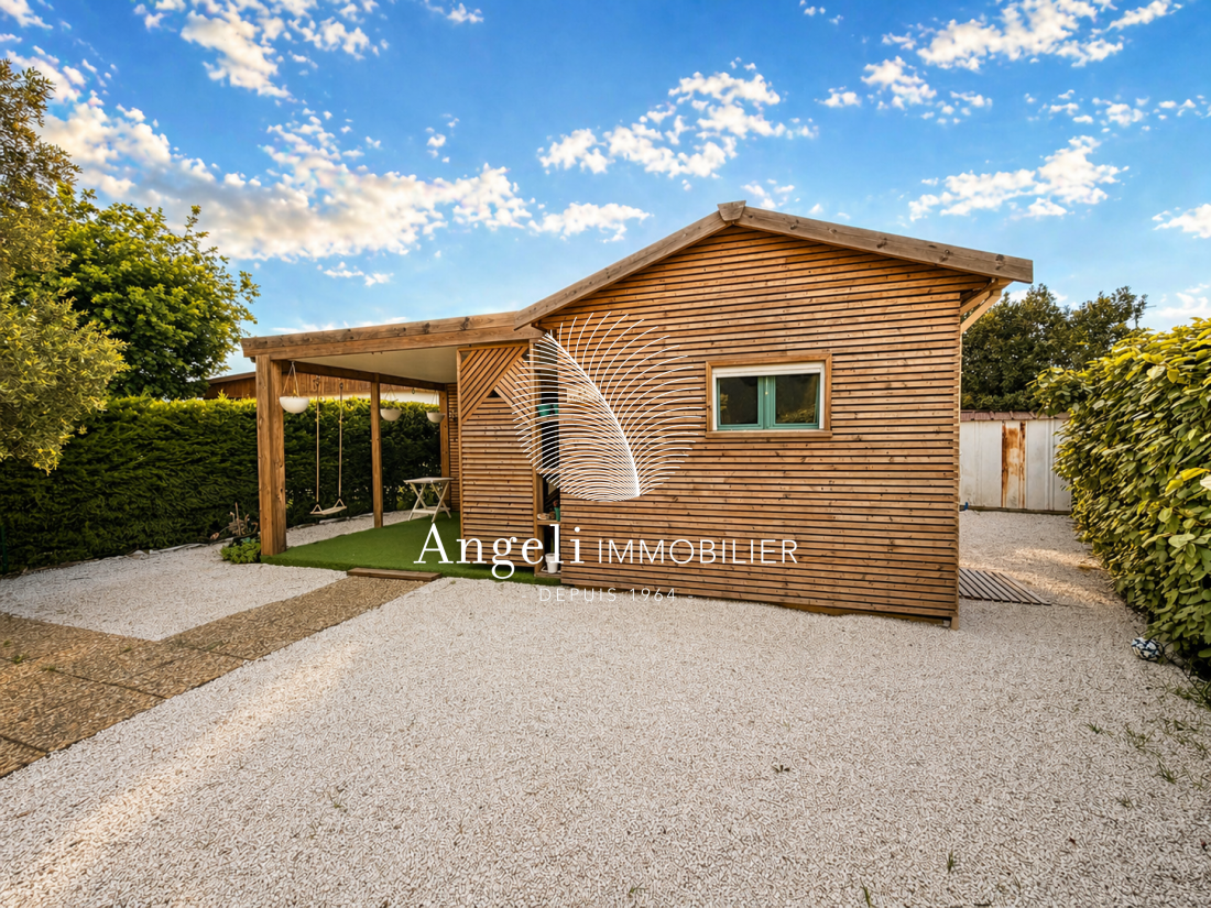 Domaine des Baux : Au sein d'un domaine sécurisé avec gardien, piscine et commerces, situation idéale en fond d'impasse, au calme absolu et sans vis-a-vis pour cette superbe habitation légère de 41,37m² aménagée avec beaucoup de goûts et des matériaux de qualité composée d'un séjour / salle à manger avec cuisine ouverte, 2 chambres, salle d'eau et wc. Un module extérieur de 19,56m² complète le bien. A l'exterieur vous serez charmés par ce beau terrain de 205m². Les informations sur les risques auxquels ce bien est exposé sont disponibles sur le site Géorisques : www.georisques.gouv.fr
